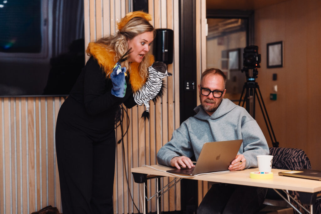 Stina Levvel (sopran) og Tomas Glans (regissør) under Opera Østfolds pre-produksjon av barneforestillingen Lille Brøl.